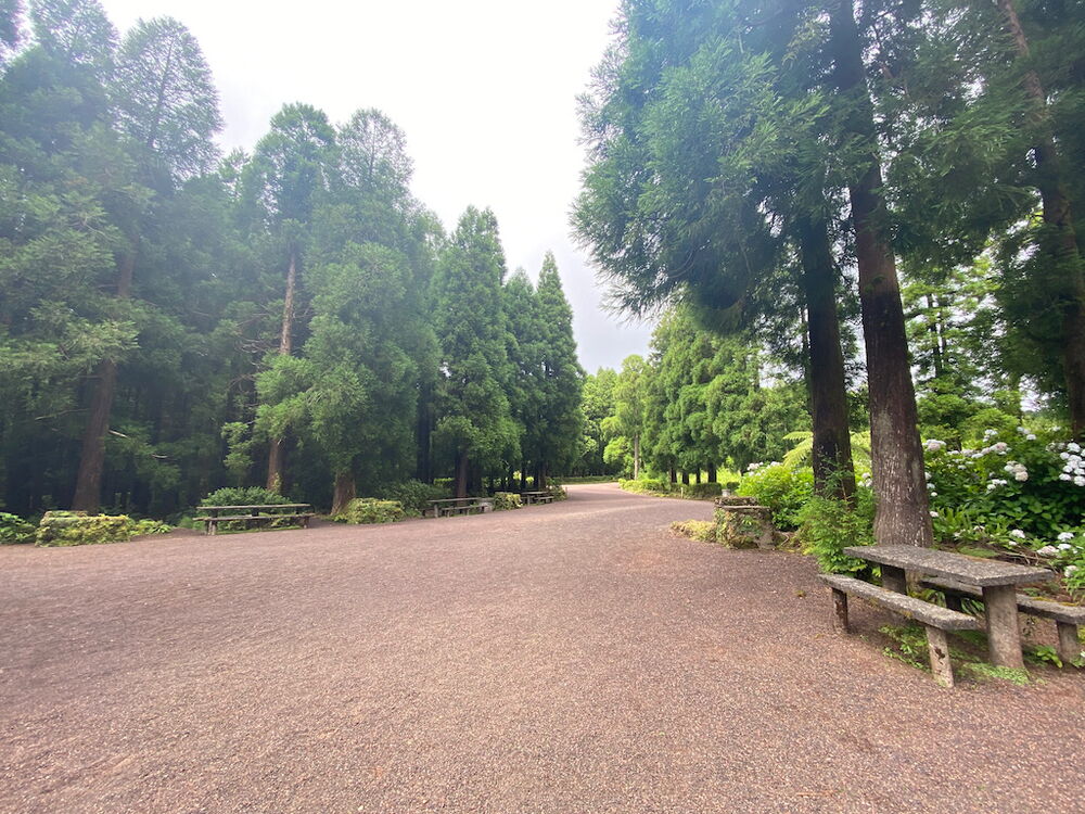 Immer entlang des Lagoa das Furnas, einer der großen Kraterseen auf der Insel, geht es durch eine üppige Flora, vorbei an kleinen Picknickplätzen und einem Bambuswald.
