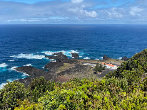 Mittlerweile hat es aufgehört zu regnen und die Sonne kommt heraus. Wir wandern durch den idyllischen Ort in Richtung Ponta da Ferraria. Die Küstenebene an der Westspitze von Sao Miguel verdankt ihre Entstehung einem Lavastrom, die der angrenzende Pico das Camarinhas entsandte. Nach kurzer Zeit erreichen wir den Leuchtturm von Ferraria und wandern weiter durch eine wunderschöne Landschaft in Richtung der heißen Thermalquellen.