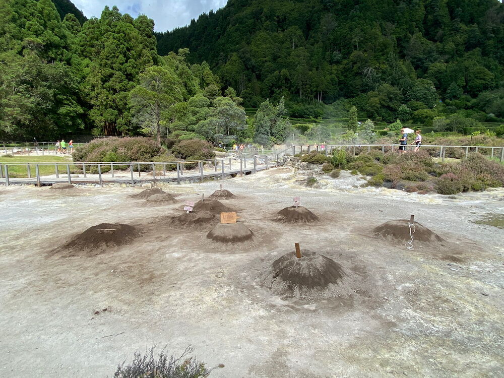 Auf den Thermalfeldern verteilt sehen wir überall kleine "Maulwurfshügel". Einheimische und Restaurants in der Umgebung nutzen die heißen Böden zur Zubereitung ihres berühmten "Cozido", einem deftigen Topf aus Fleisch und Gemüse. Die Töpfe werden in den Boden versenkt und schmoren etwa 4 Stunden vor sich hin.