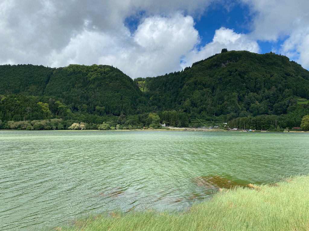 Das Dorf am Westufer des Lago Azul ist Ausgangspunkt verschiedener Wanderwege und viel von Touristen besucht. Bevor wir uns auf die Suche eines Restaurants machen, besuchen wir noch den kleinen idyllischen Park am Ortsrand und blicken über den weiten Lago Azul, den wir vor wenigen Stunden noch oben vom Kraterrand bestaunen durften. Mit dem "Lagoa Azul" finden wir wenig später inmitten des Ortskern das erhoffte Restaurant und lassen uns vom gut bestückten Buffet die heimische Hausmannskost so richtig schmecken.