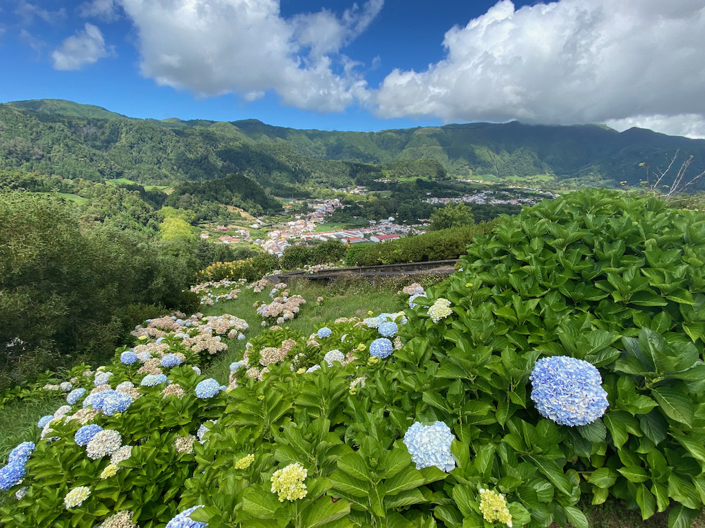 Nicht nur der botanische Garten in Furnas sondern auch die Umgebung drumherum ist Natur pur. Überall stehen Hortensien in voller Blüte, sprudeln kleine Quellen oder verzaubert eine bunte Blumenpracht den Wanderer. Das eigene Mikroklima des Tals sorgt für eine außergewöhnliche Flora.