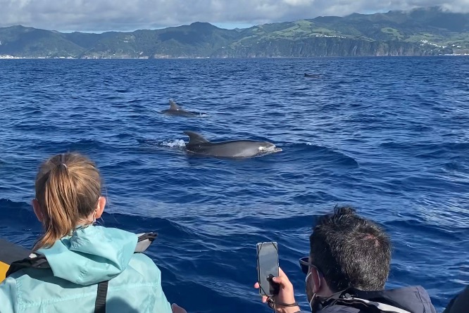 Bevor es zurück zum Hafen geht, macht das Boot noch einen kleinen Abstecher zur Ilheu de Vila Franca do Campo. Im Inneren der kleinen Vulkaninsel hat sich eine fast kreisrunde Kraterlagune gebildet, die von Einheimischen und Touristen als "natürliches Schwimmbecken" genutzt wird. Mit dem Gelbschnabel-Sturmtaucher und der Fluss-Seeschwalbe brüten zwei Seevögelarten auf den unzugänglichen Felsen.