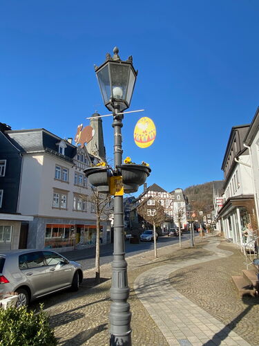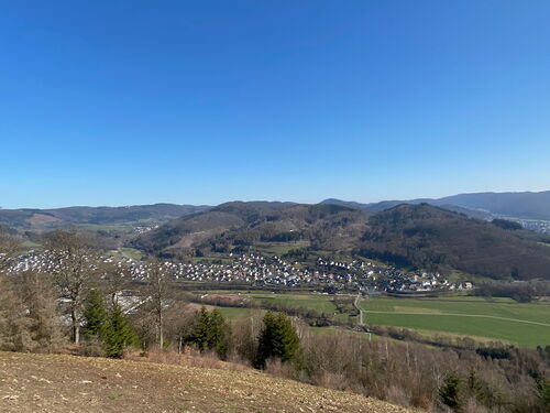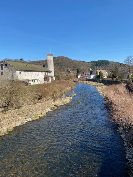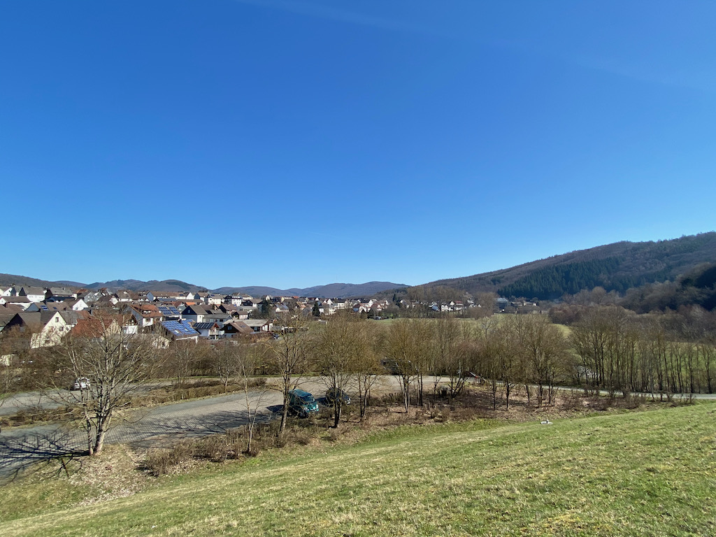 Die Wettervorhersage für meine 2 Wandertage war hervorragend. Viel Sonne und Temperaturen bis zu 24 Grad. Mein Start vom Bahnhof in Bad Laasphe war allerdings noch leicht unterkühlt, aber die Sonne strahlt mir schon von einem wolkenlosen Himmel entgegen.
