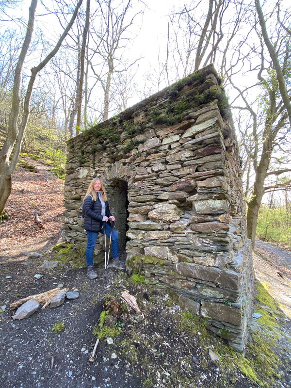 Im Fels neben uns befinden sich plötzlich überall kleine ausgewaschene Löcher. Die sogenannten Heinzelmannshöhlen. Hier wohnten der Sage nach kleine Heinzelmännchen, die den Bad Emsern in der Nacht die Arbeit abnahmen.