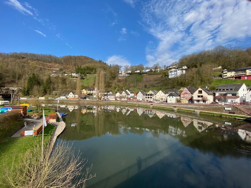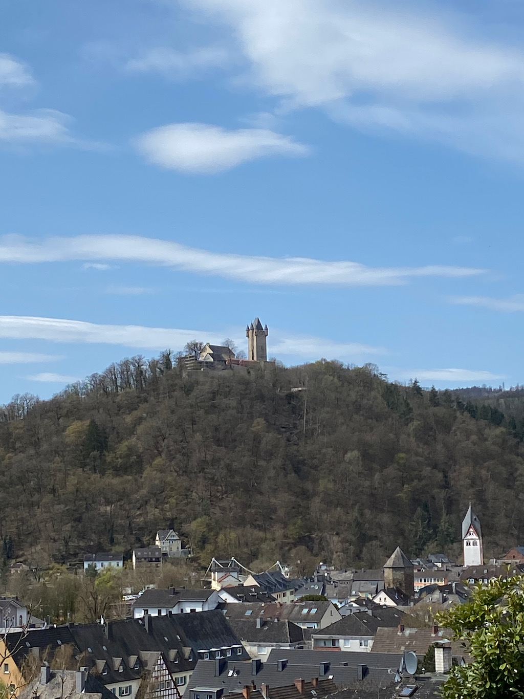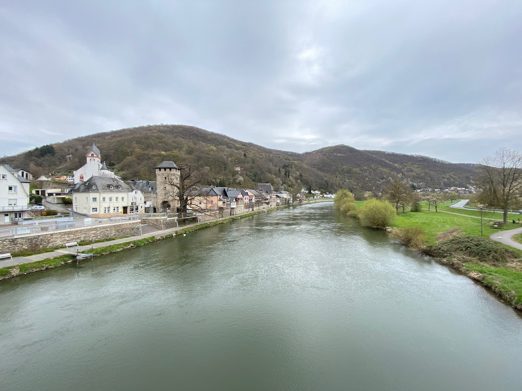 Wir steigen die Eisentreppe wieder hinab und laufen weiter in Richtung unseres nächsten Etappenziels nach Nassau. Die Stadt ist ein staatlich anerkannter Luftkurort und beliebtes Ausflugsziel von Touristen. Wir stürzen uns erstmal zur nächsten Eisdiele und genießen Eis und Capuccino mit Blick auf das historische Rathaus aus dem 17. Jahrhundert.