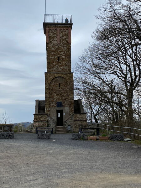 Wir steigen eine Teerstraße hinauf und erreichen die historische Stadtbefestigung von Dausenau. Von hieraus geht es vorbei an schönen Schrebergärten und mal wieder steil hinauf zu den Lahnhöhen. Über einen kleinen Wiesenpfad wandernd sehen wir schon in der Ferne den Concordiaturm, der sich hoch über Bad Ems erhebt. Im Inneren führen die 77 Stufen einer eisernen Wendeltreppe zu einer kleinen Aussichtsplattform. Das Restaurant direkt neben dem Turm war wegen Corona geschlossen.