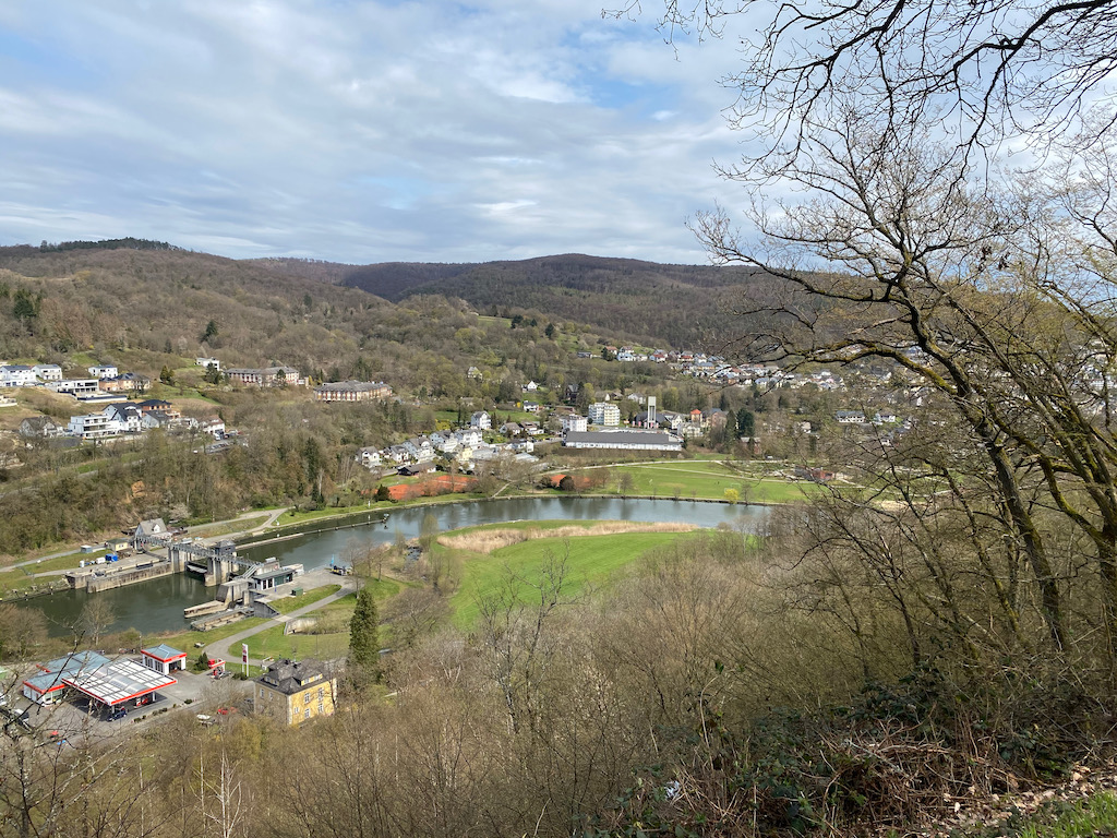 Auf dem Abstieg Richtung Bad Ems kommen wir immer wieder an schön angelegten Aussichtskanzleien vorbei mit toller Sicht auf Bad Ems und Umgebung.