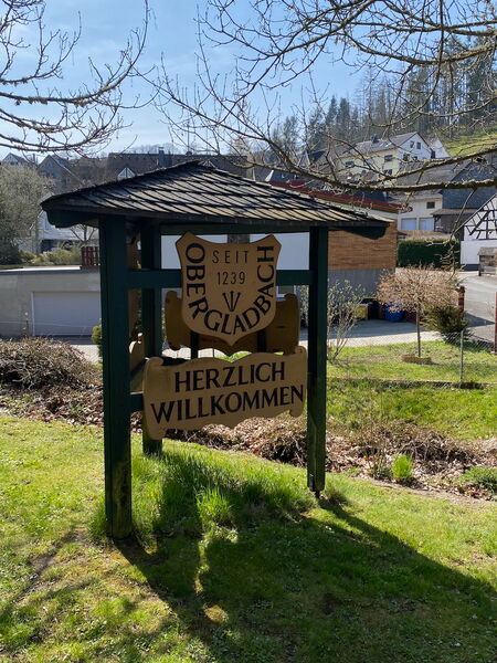 Kurz bevor wir den Ort Obergladbach erreichen, passieren wir einen kleinen Friedhof und bleiben kurz an einem alten Grabstein stehen. Es ist der einzige auf diesem kleinen alten Friedhof mitten im Wald.