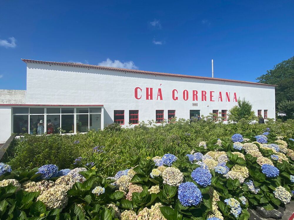Wir werden sofort von einer Mitarbeiterin der Plantage persönlich begrüßt und bekommen einen etwa achtminütigen Film auf Deutsch zu sehen, der dem Besucher die Geschichte des Teeanbaus und der Produktion näher bringt. Zum Abschluss gibt es dann noch eine kleine Tee Verköstigung. Im kleinen Shop der Fabrik decken wir uns natürlich mit ein wenig Tee für zu Hause ein. Von dort aus besuchen wir die zweite Plantage Chá Gorreana.