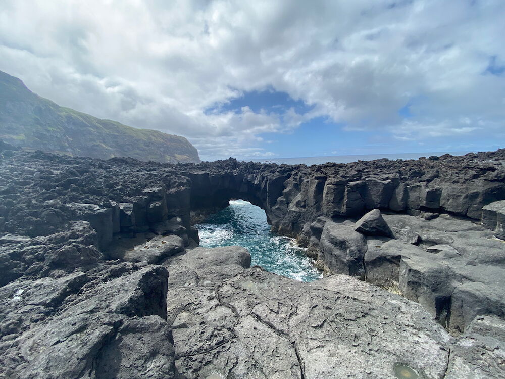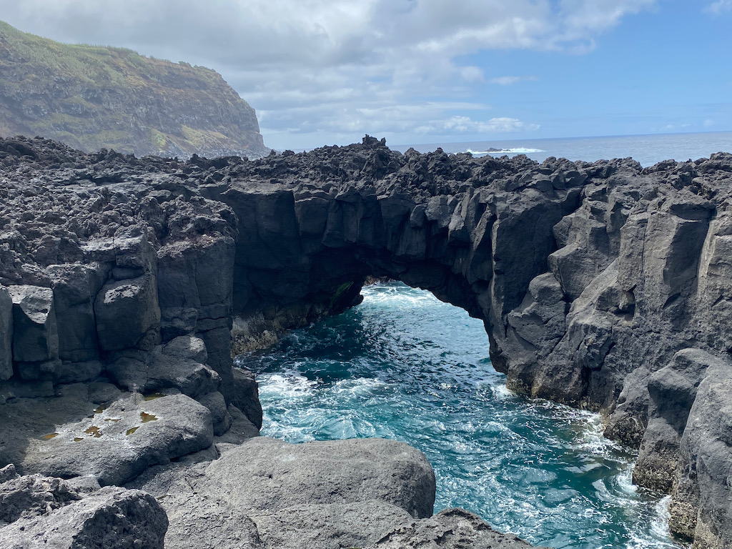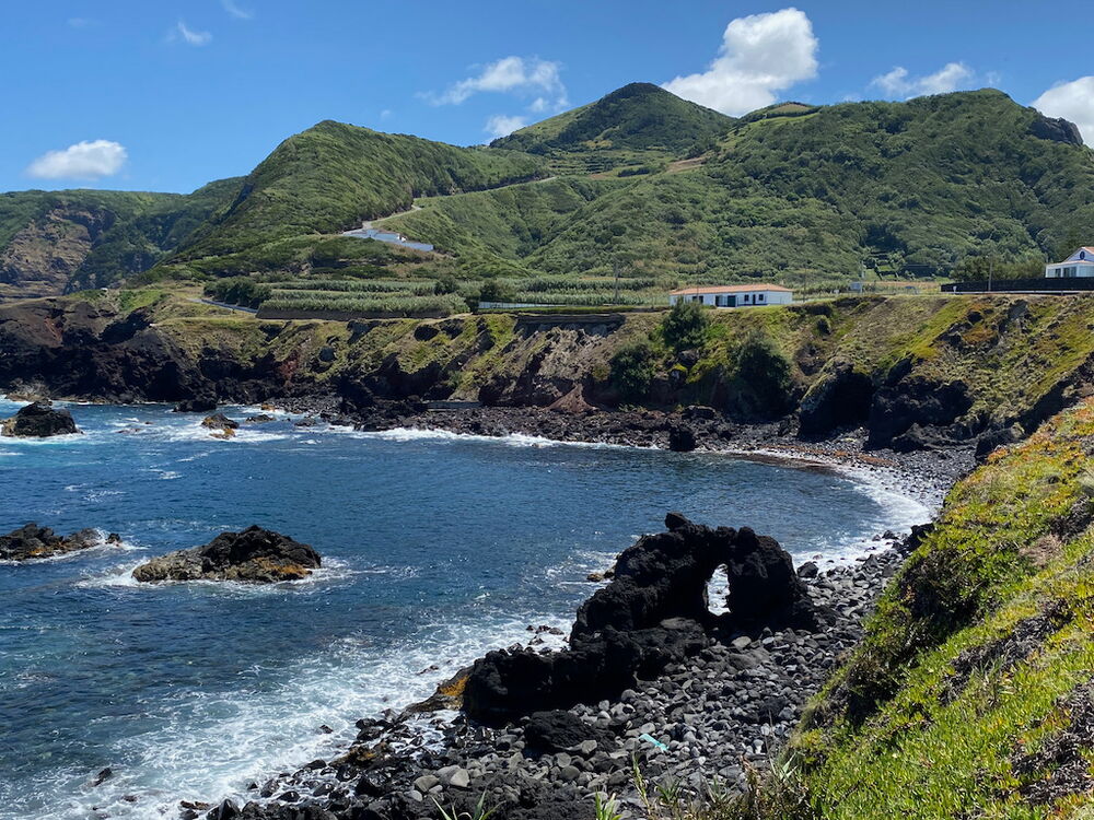 Wir erreichen das ehemalige Fischerdorf Mosteiros und stehen wenig später auf dem schönen Marktplatz im Zentrum des Örtchens.Der Ort liegt direkt am Meer und unser Ziel sind die dunklen Sandstände mit Naturschwimmbecken, die von heißen Quellen erwärmt werden.