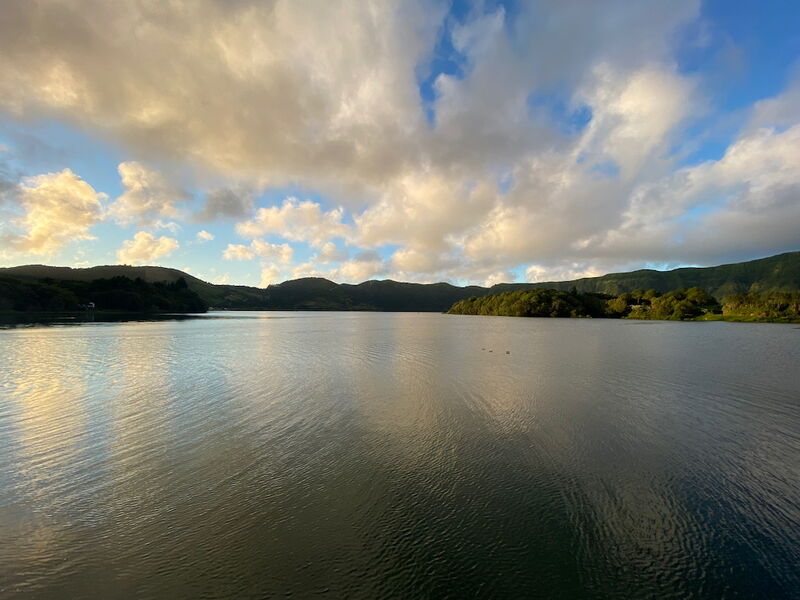 Wir verlassen endlich die Hauptstraße und wandern durch ein beliebtes Naherholungsgebiet bestehend aus dichten Wäldern und dem Lagoa do Canário. Der kleine See selbst ist im Vergleich der anderen Kraterseen weniger spektakulär aber die dichten Wälder drum herum bieten Ruhe und Entspannung pur. Bei einem kleinen Picknick mitten im Wald bekommen wir Besuch von einem kleinen Vogel, der hofft von unserem Mahl etwas abzubekommen und uns nicht mehr von der Seite weicht.