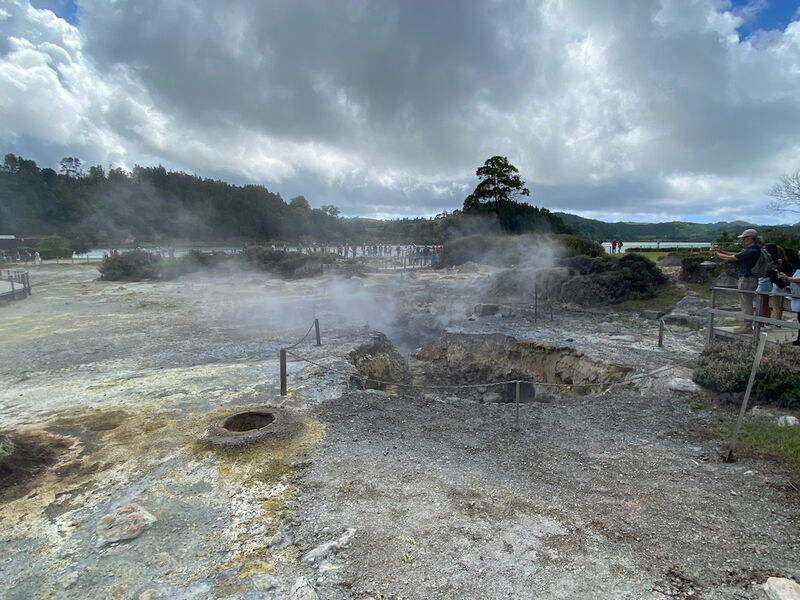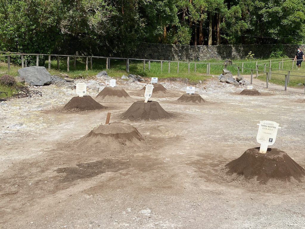 Auf den Thermalfeldern verteilt sehen wir überall kleine "Maulwurfshügel". Einheimische und Restaurants in der Umgebung nutzen die heißen Böden zur Zubereitung ihres berühmten "Cozido", einem deftigen Topf aus Fleisch und Gemüse. Die Töpfe werden in den Boden versenkt und schmoren etwa 4 Stunden vor sich hin.