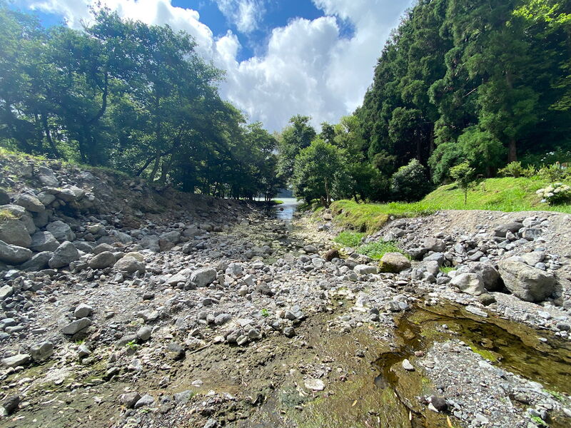 Am letzten Tag unserer Azoren Reise geht es auf eine Wanderung zum Wasserfall Salto do Cabrio. Vom Parkplatz an der Hauptstraße nach Ribeira Grande geht es auf einer staubigen Piste zu einem Wasserkraftwerk, welches gespeist durch den Ribeira Grande, der Stromerzeugung dient. Dann führt der Weg uns steil hinab entlang des Flusses in ein wunderschönes kleines Tal.