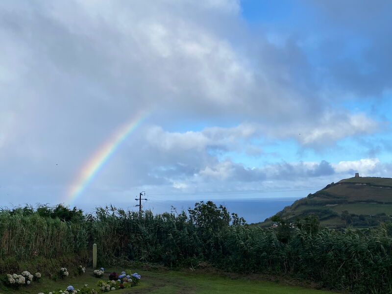 So stehen wir dann nach etwa 4 Stunden Flug am Flughafen von Ponta Delgada und machen uns auf die Suche nach einem Taxi. Aufgrund der schwierigen Corona Situation sind in diesem Sommer Leihfahrzeuge auf den Azoren ein kostbares Gut und fast nicht zu bezahlen. Zum Glück konnten die Besitzer unseres Ferienhauses uns noch ein Auto eines lokalen Anbieters beschaffen, das wir allerdings erst an Tag 3 in Empfang nehmen können. Jetzt geht es erstmal mit dem Taxi nach Ginetes in unserer Feriendomizil.