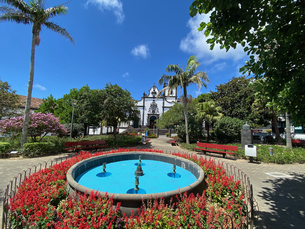 Nachdem wir nun endlich mobil sind, geht es in den Norden der Insel nach Ribeira Grande. Wir erreichen den zweitgrößten Inselort nach einer einstündigen Fahrt entlang der Küste. Vom Parkplatz aus erreichen wir inmitten einer Grünanlage liegend die "Igreja Matriz", eines der schönsten und größten Gotteshäuser der Azoren.