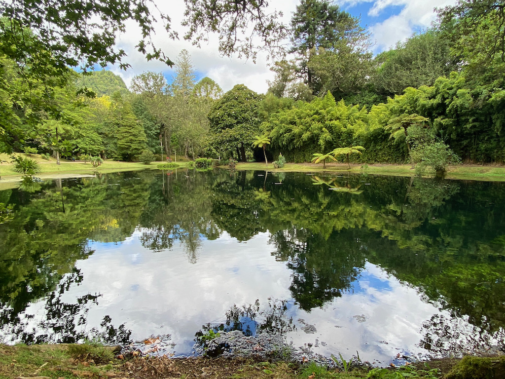 Immer entlang des Lagoa das Furnas, einer der großen Kraterseen auf der Insel, geht es durch eine üppige Flora, vorbei an kleinen Picknickplätzen und einem Bambuswald.