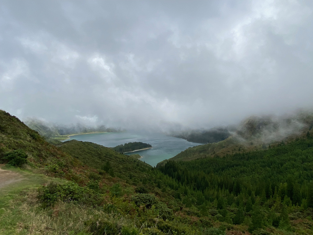 Wir genießen noch ein wenig unseren Aufenthalt vor Ort und machen später noch eine kleine Autotour zum Lagoa do Fogo. Der Kratersee, übersetzt "Feuerlagune", liegt auf 575 m Höhe umgeben von endemischen Lorbeerwald und gilt als das Vogelparadies der Insel. Leider spielt das Wetter nicht so mit. Es ist kühl und stürmt ziemlich heftig, allerdings geben die tiefliegenden Wolken zum Glück das ein oder andere mal den Blick frei auf die "Feuerlagune".