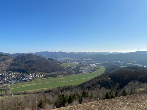 Ich laufe durch den Kurpark der Stadt und erreiche nach einem knappen Kilometer das erste Waldstück. Nun geht es knackig hinauf zum Hausberg von Bad Laasphe.