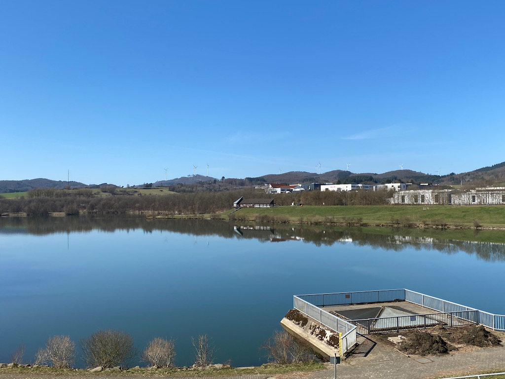 Mein nächstes Etappenziel ist der Perftstausee ihm Ortsrand von Breidenstein. Der nach einer Flutkatastrophe im Jahr 1984 gebaute Stausee dient in erster Linie dem Hochwasserschutz für Perf und Lahn ist aber auch beliebtes Ausflugsziel im Sommer mit Badestrand, Restaurant und mobilem Kiosk.