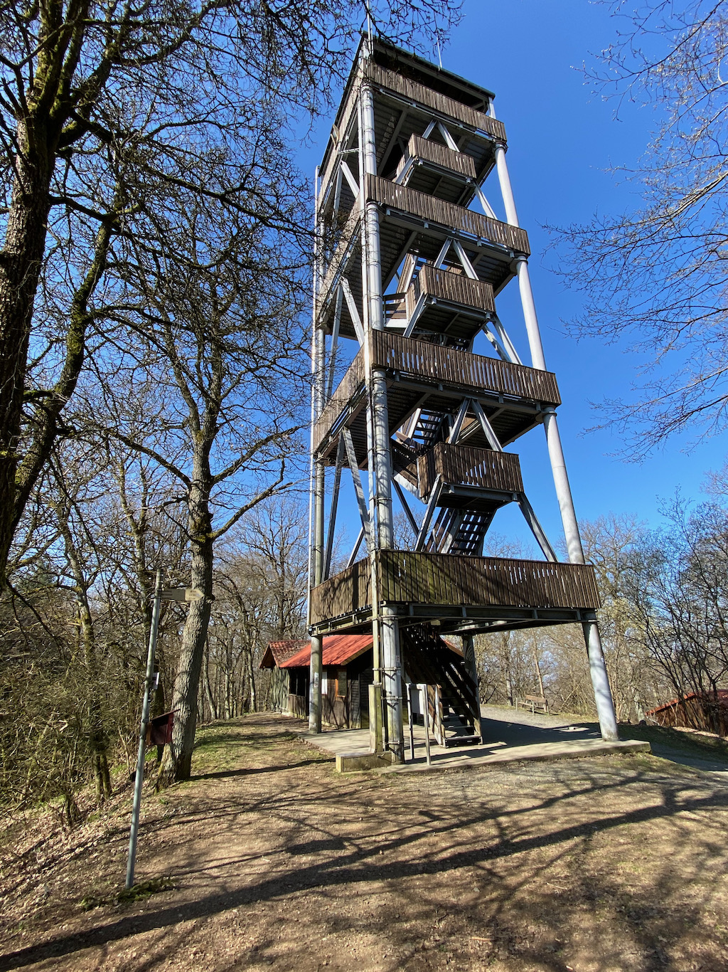 Mit einem Podcast über einen Thruhike von Eisenach nach Budapest in den Ohren stehe ich plötzlich auf dem Rimberg. Vom Rimberg-Turm aus reicht der Blick in den Taunus und ins Rothaargebirge. Der kilometerlange Anstieg hoch auf den Berg reicht mir allerdings vollkommen und so verzichte ich auf diese Ausblicke, denn davon habe ich auf meinem Weg mehr als genug.
