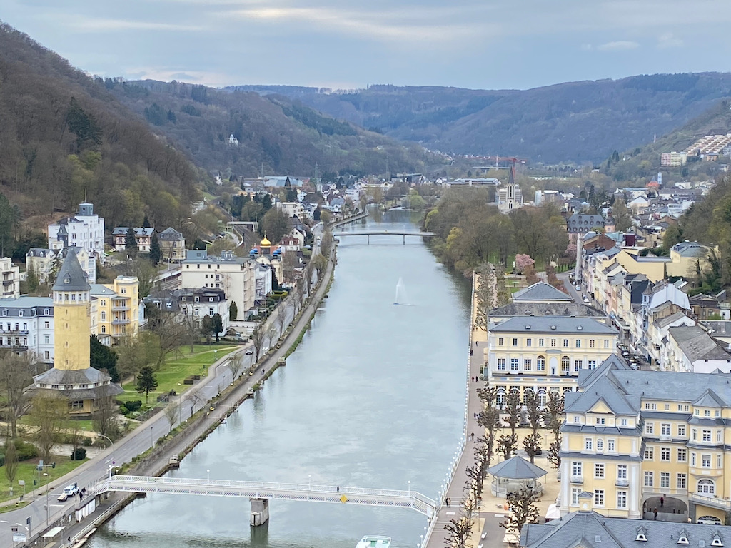 Wir steigen die Eisentreppe wieder hinab und laufen weiter in Richtung unseres nächsten Etappenziels nach Nassau. Die Stadt ist ein staatlich anerkannter Luftkurort und beliebtes Ausflugsziel von Touristen. Wir stürzen uns erstmal zur nächsten Eisdiele und genießen Eis und Capuccino mit Blick auf das historische Rathaus aus dem 17. Jahrhundert.