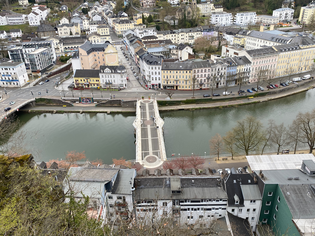 Weiter geht es auf einer beeindruckende Kettenbrücke über die Lahn mit wunderschöner Aussicht auf die Stadt und den herrlichen Fluß.
