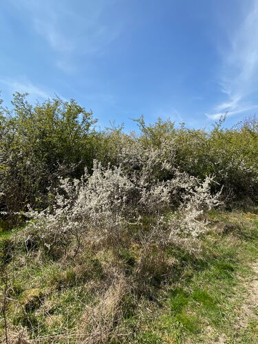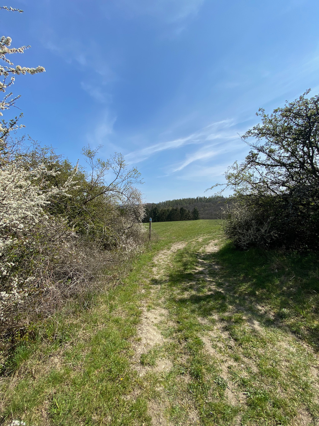 Über offene Wiesen und Weiden wandernd, genießen wir das Farbenspiel der Natur. Blauer Himmel, das satte Grün der Almen und die weißen Blüten der allgegenwärtig blühenden Schlehen bezaubern unsere Sinne.