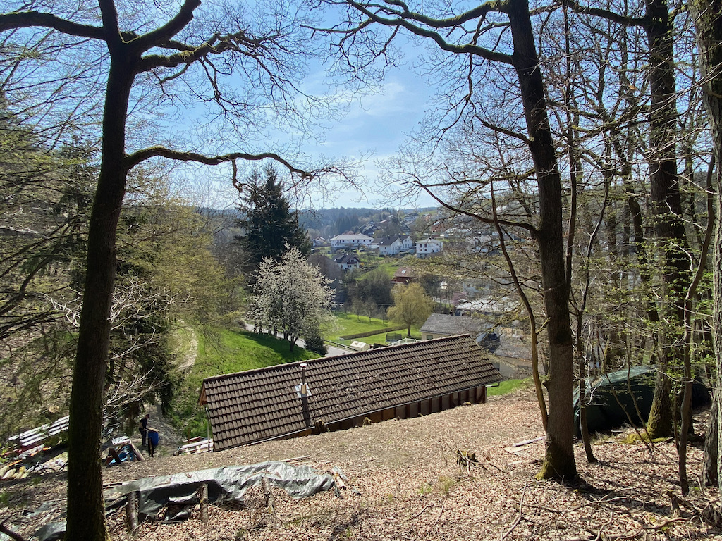 Auch wenn es angesichts der warmen Temperaturen und des tollen Ausblicks schwer fällt, machen wir uns wieder auf den Weg. Wir wandern durch den so idyllisch gelegenen Ort und steigen hinauf zum 425 m hohen Anselberg. Die letzten Kilometer geht es unspektakulär durch ein stilles Waldgebiet, bevor es dann wieder steil hinab zum Ausgangspunkt unserer Wanderung geht.